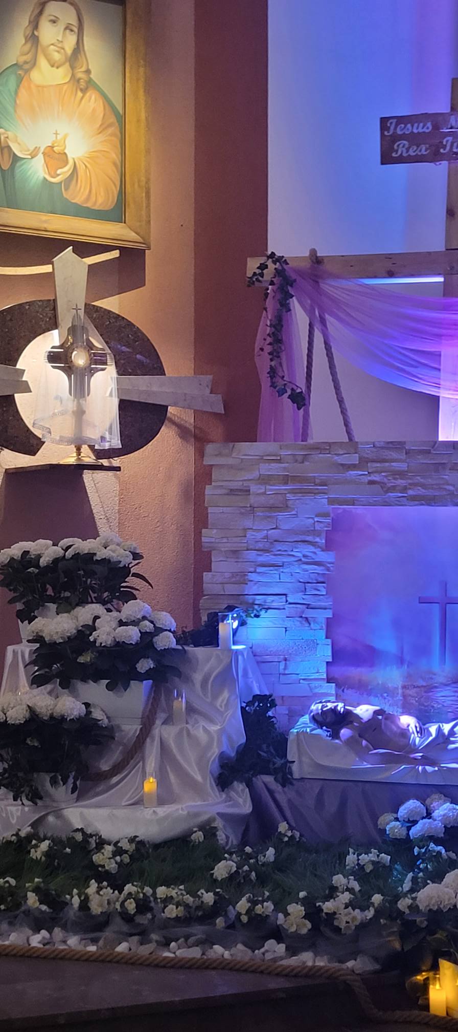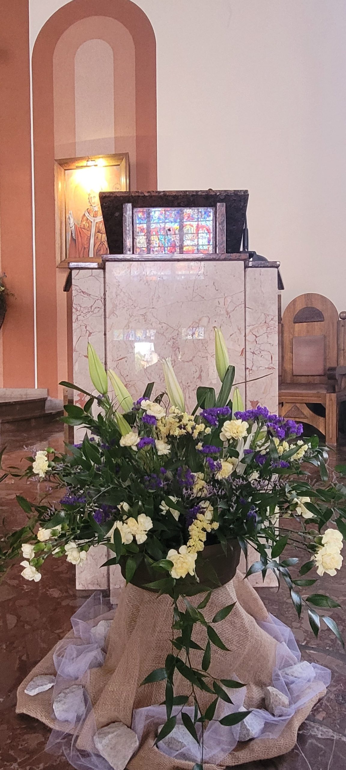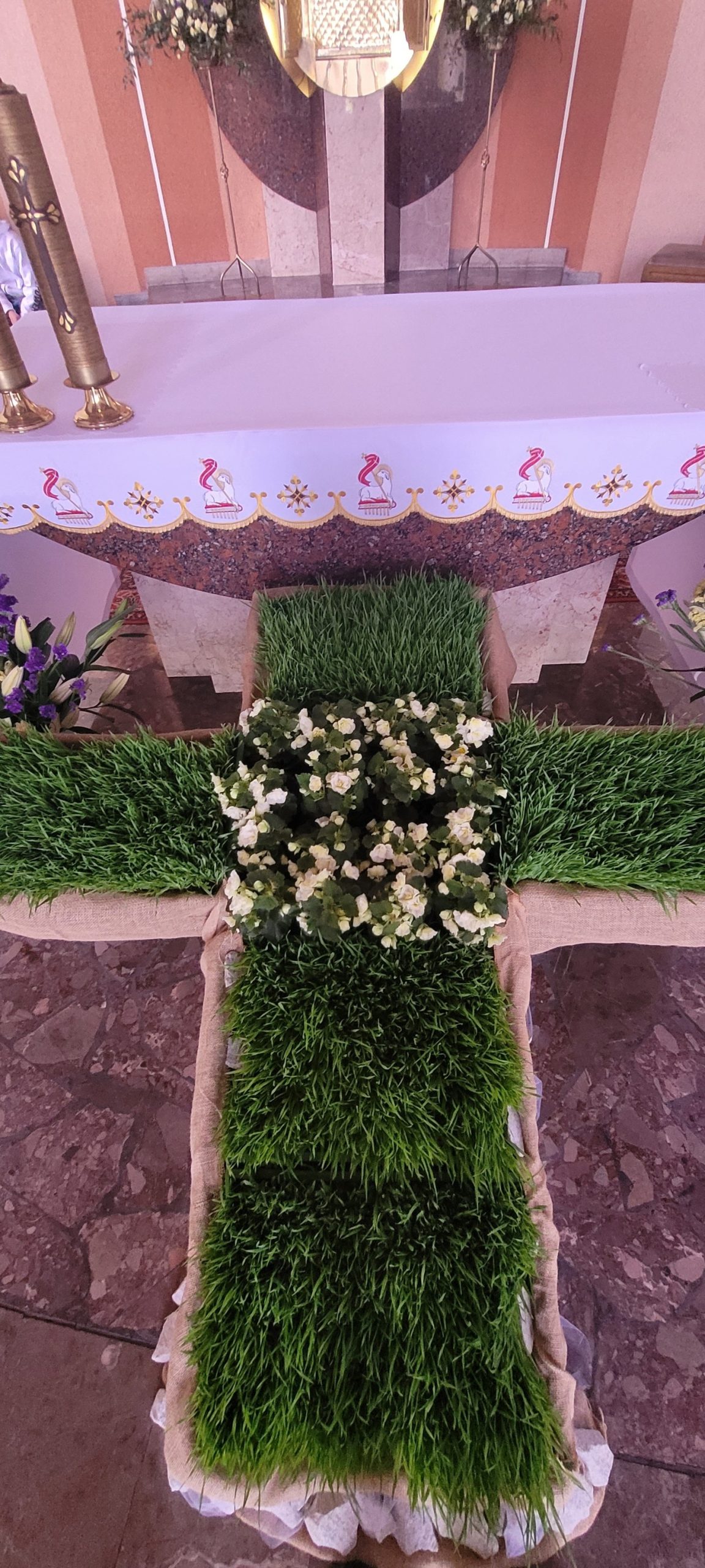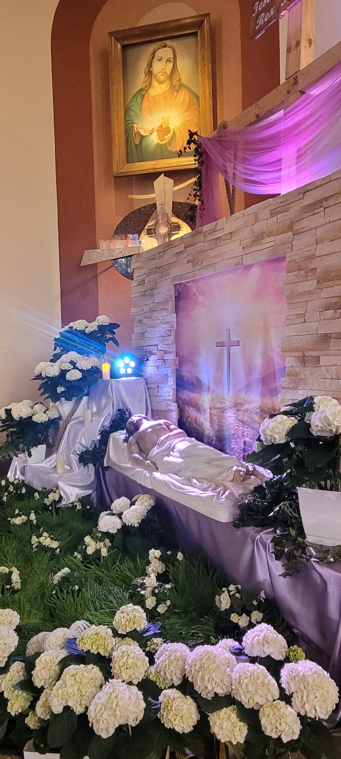 Trwa wielkosobotnia cisza i adoracja Jezusa w Grobie. Jesteśmy po poświęceniu pokarmów na jutrzejsze śniadanie wielkanocne. Ołtarz już też gotowy na dzisiejszą wieczorną Liturgię Wigilii Paschalnej. Wielkie ukłony dla Pań Justyny i Agnieszki oraz dla osób je wspomagających za piękny, świąteczny wystrój naszego kościoła.