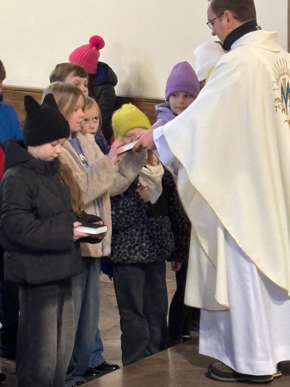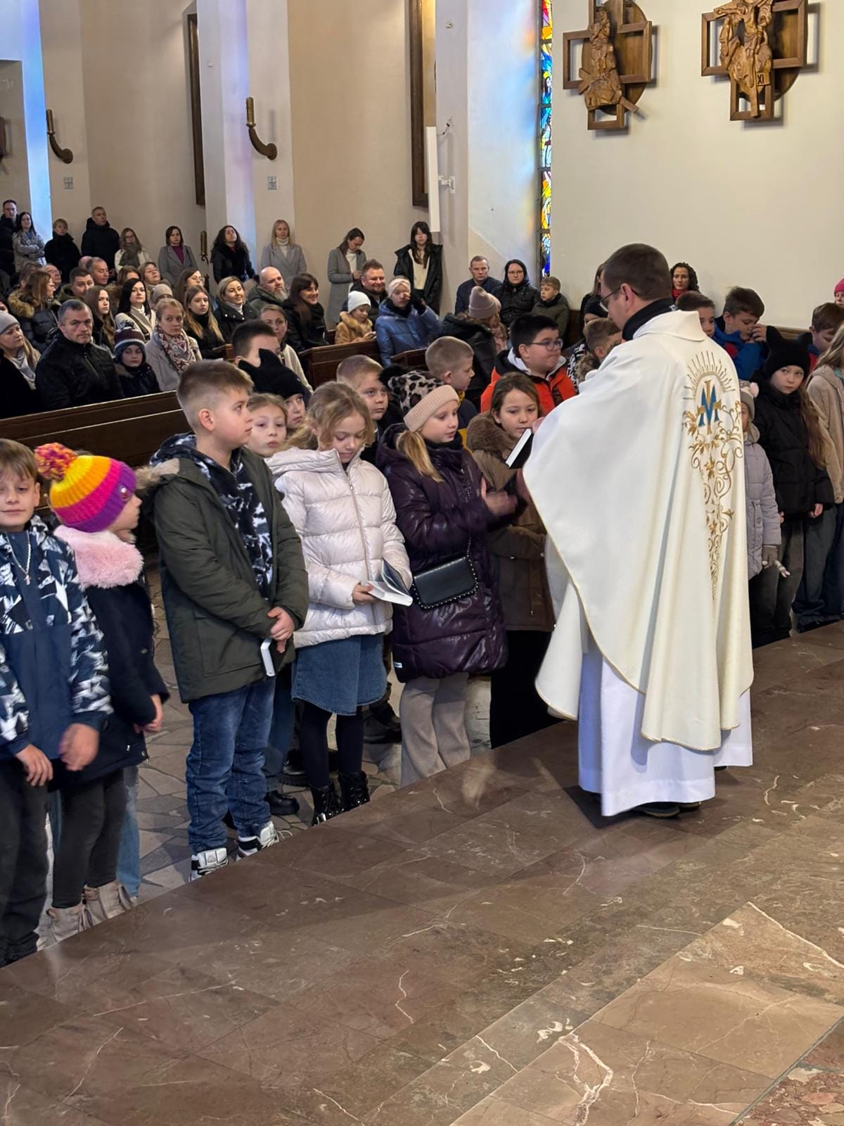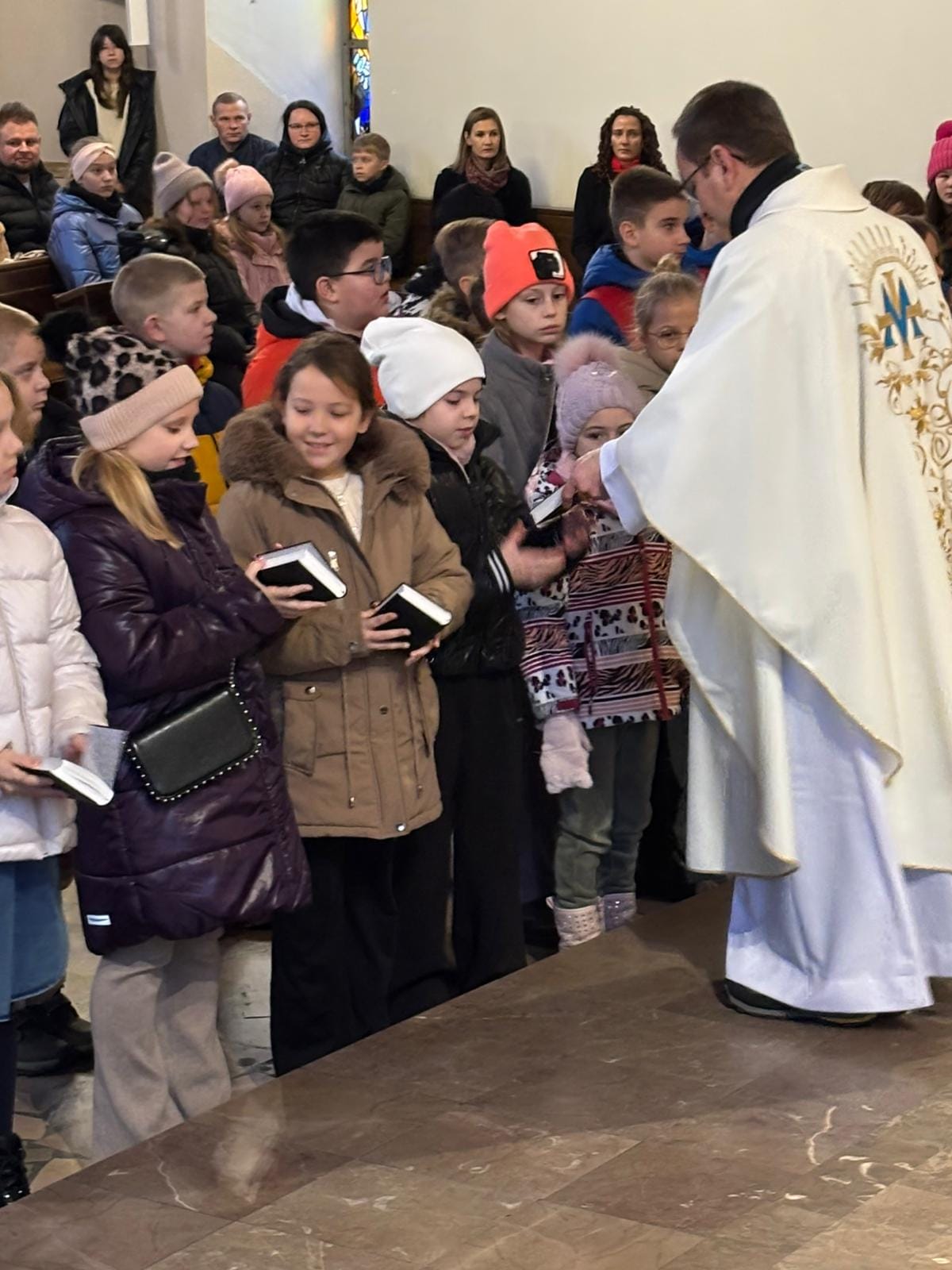 W uroczystość Niepokalanego Poczęcia NMP nasze dzieci, które przygotowują się do I Komunii Świętej, otrzymały medaliki i książeczki do nabożeństwa. Niech pomagają im stworzyć dla Pana Jezusa takie serce, pod jakim przebywał przez dziewięć miesięcy u Maryi. I niech będą im tarczą, która chronić je będzie od złego