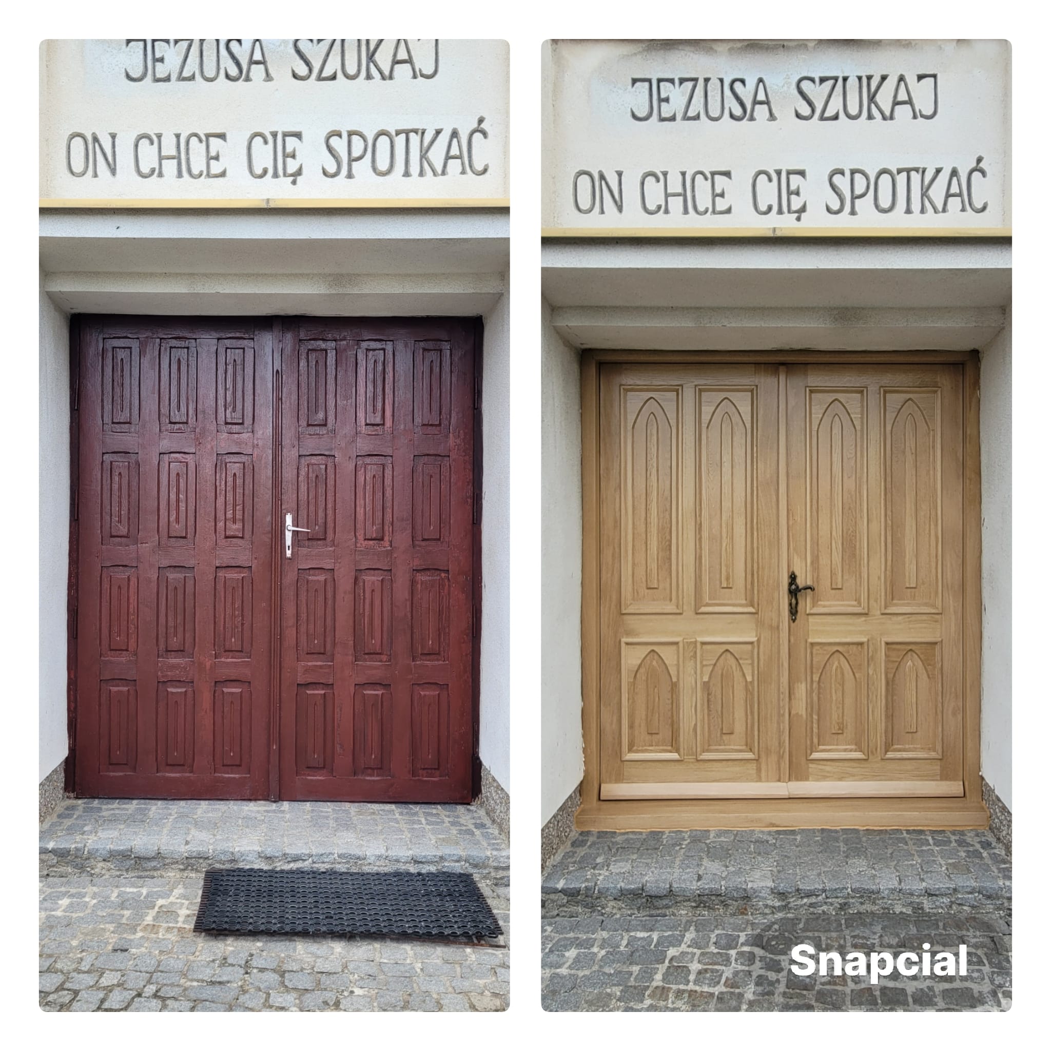 Nasz kościół w Pieczyskach na Uroczystość Wszystkich Świętych ma nowe drzwi wejściowe. Po wcześniej wymienionych drzwi do bocznej części kościoła, dziś, drzwi, pochodzące z roku 1993, również wymienione zostały na nowe, dębowe, wykonane ręcznie przez Pana Marka z okolic Sycowa.