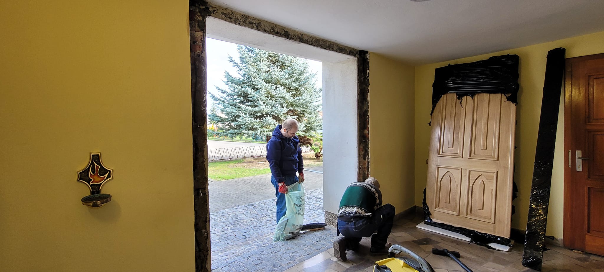 Ps… proboszcz nauczył się dzisiaj, że piankę montażową odcina się w rękawiczkach