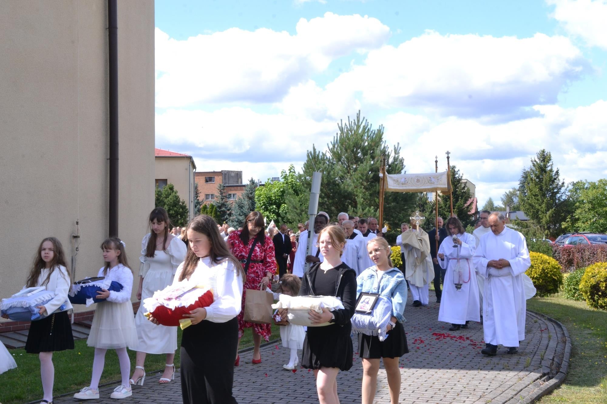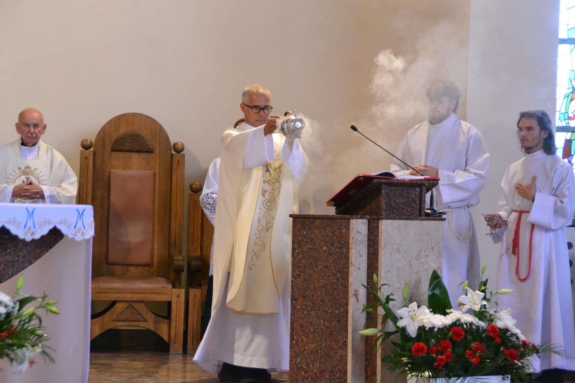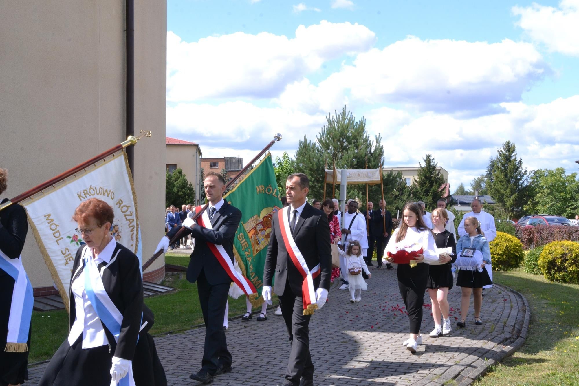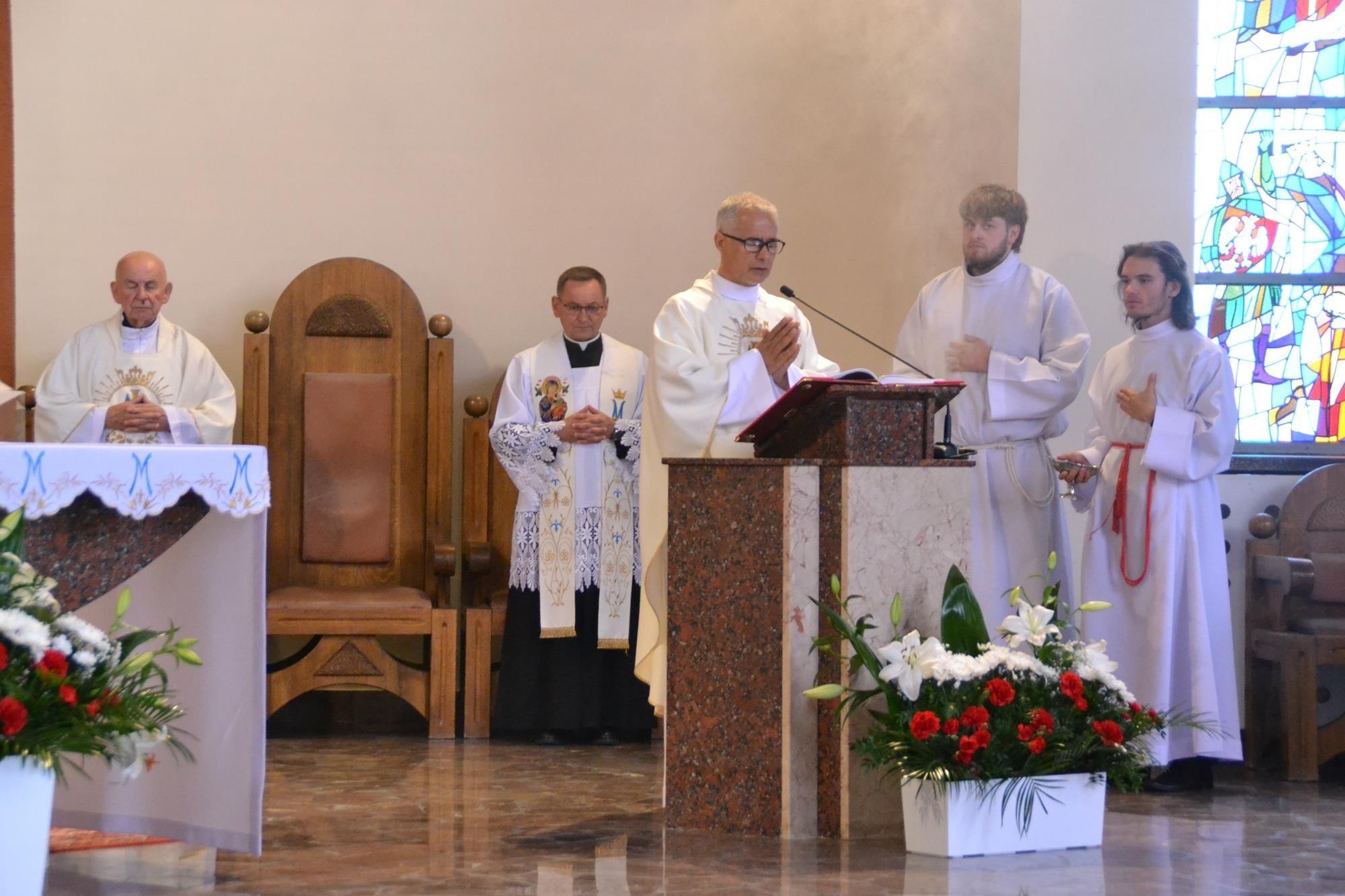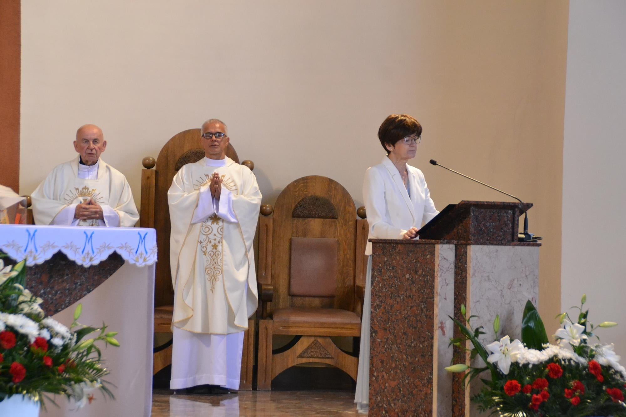 Bardzo dziękuję za włączenie się w przeżycie Sumy Odpustowej orkiestrze, asyście procesyjnej ze sztandarami i baldachimem, dziewczynom za Liturgię Słowa, pani Krysi za przygotowanie ołtarza i modlitwy wiernych, ministrantom, dwóm dziewczynkom sypiącym kwiaty, rodzinom sprzątającym kościół w piątek i za piękne kwiaty przy ołtarzu, księżom z dekanatu wieruszowskiego oraz każdemu, dla kogo ten dzień miał znaczenie i czuł potrzebę bycia dzisiaj razem, przy Sercu Maryi. WIELKIE DZIĘKUJĘ DLA KAŻDEGO Z WAS
