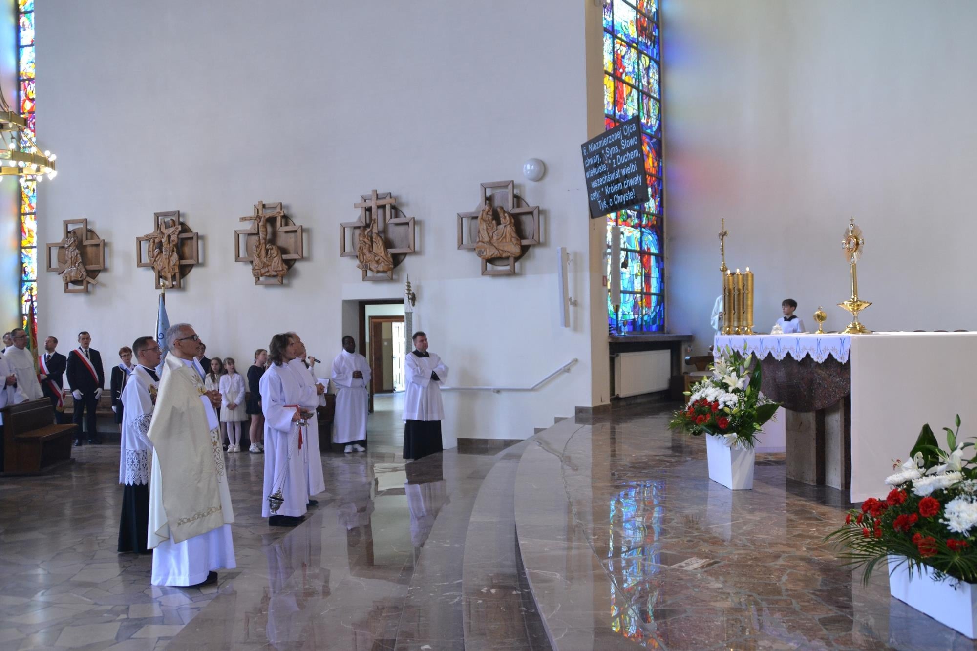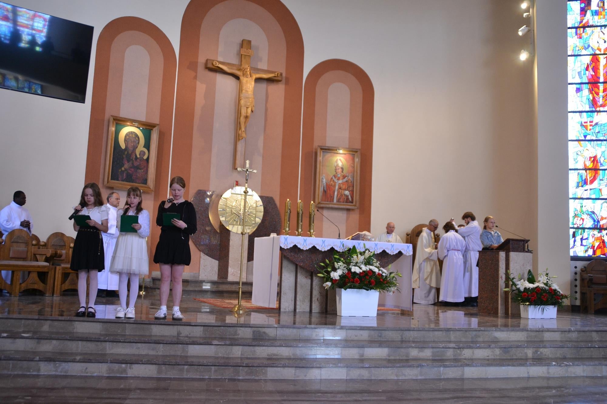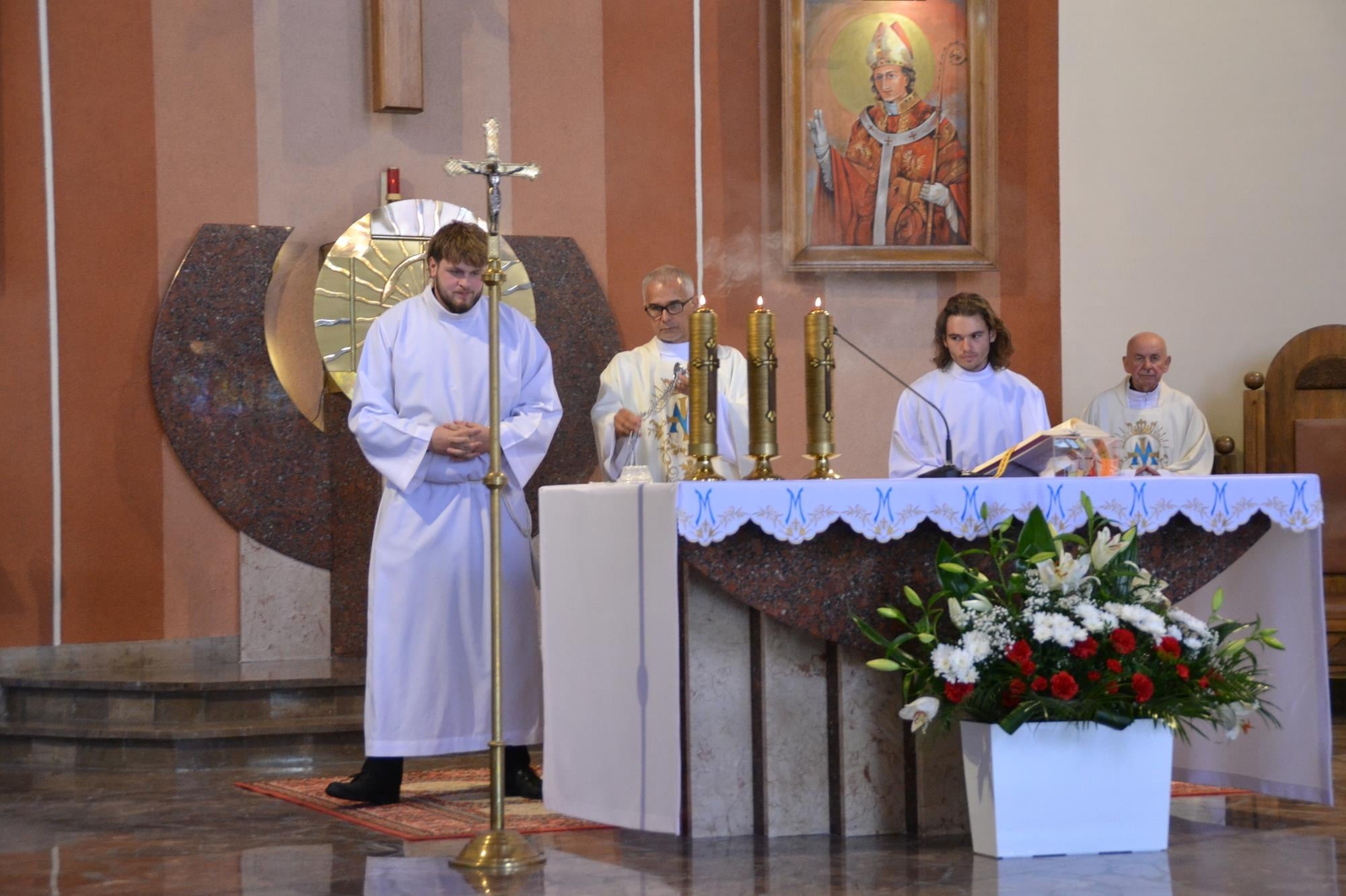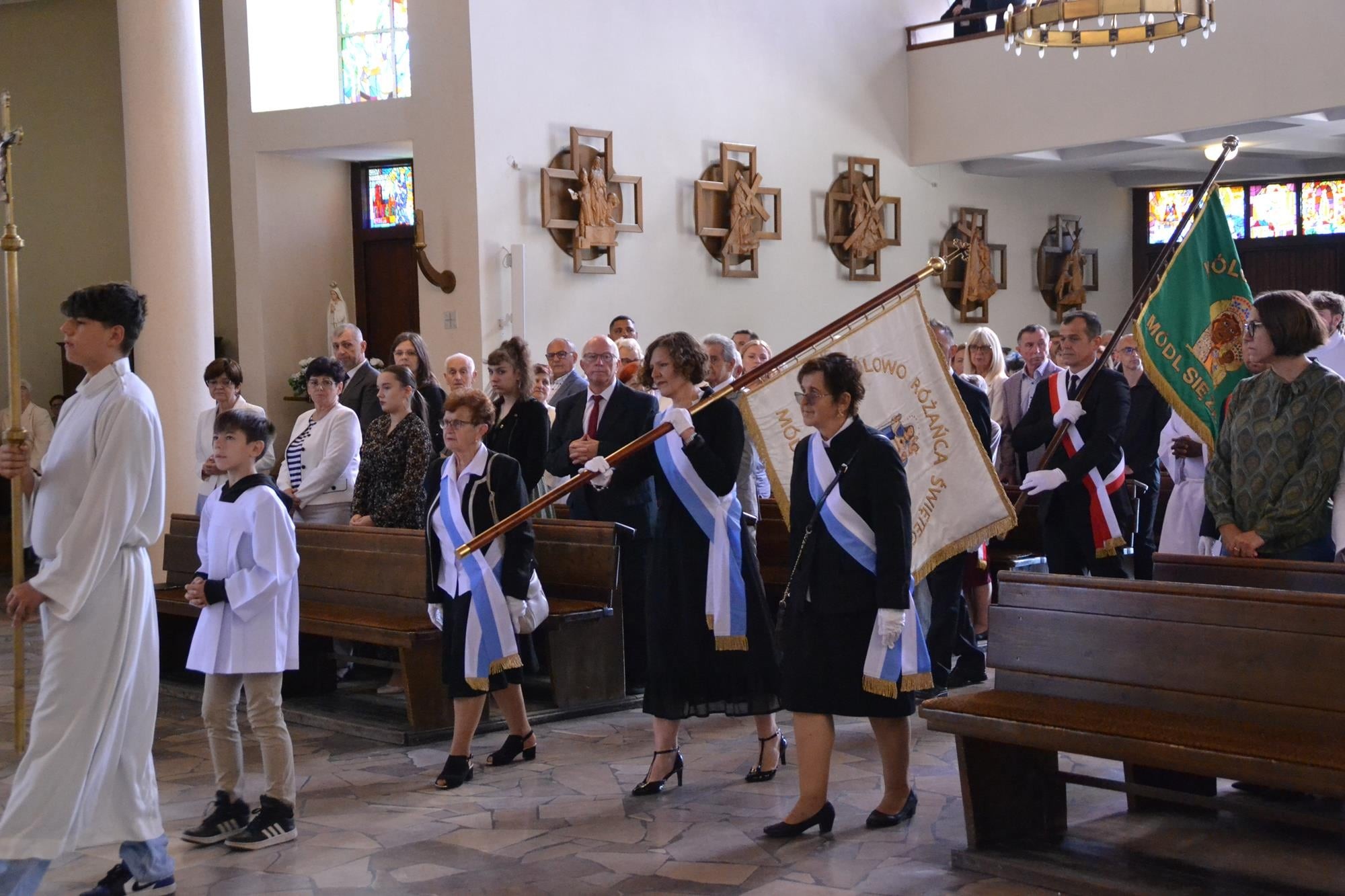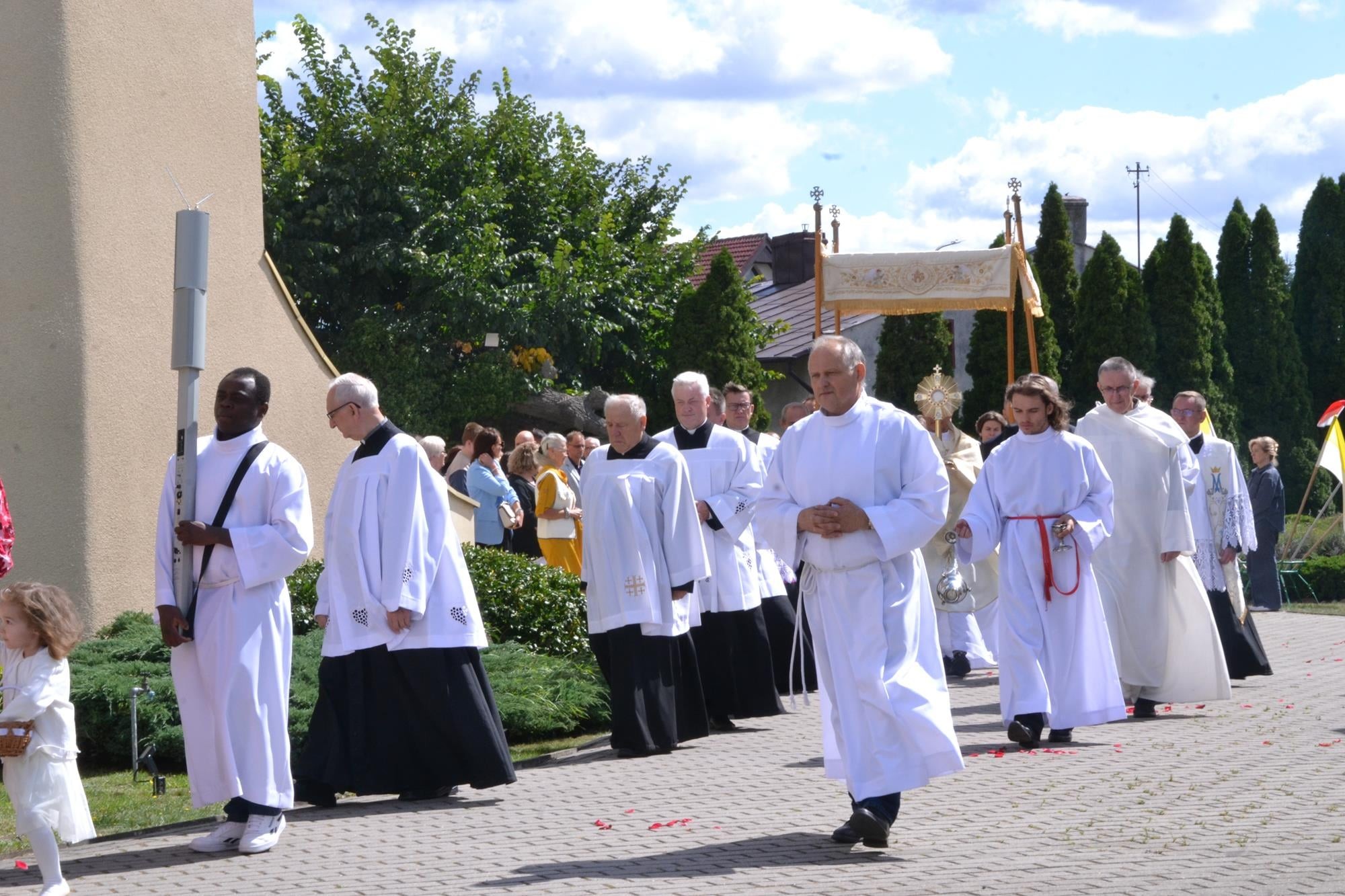 Bardzo dziękuję za włączenie się w przeżycie Sumy Odpustowej orkiestrze, asyście procesyjnej ze sztandarami i baldachimem, dziewczynom za Liturgię Słowa, pani Krysi za przygotowanie ołtarza i modlitwy wiernych, ministrantom, dwóm dziewczynkom sypiącym kwiaty, rodzinom sprzątającym kościół w piątek i za piękne kwiaty przy ołtarzu, księżom z dekanatu wieruszowskiego oraz każdemu, dla kogo ten dzień miał znaczenie i czuł potrzebę bycia dzisiaj razem, przy Sercu Maryi. WIELKIE DZIĘKUJĘ DLA KAŻDEGO Z WAS