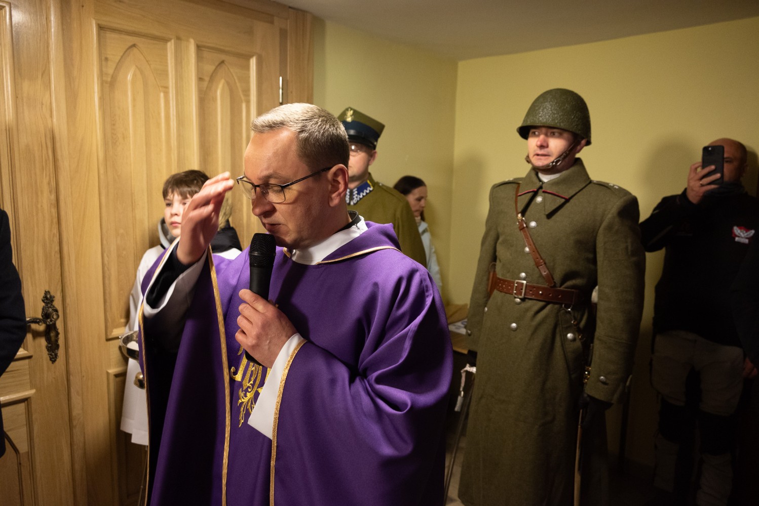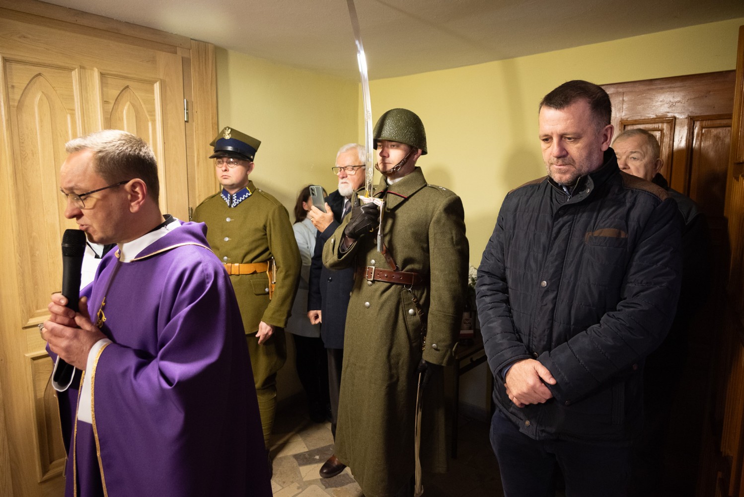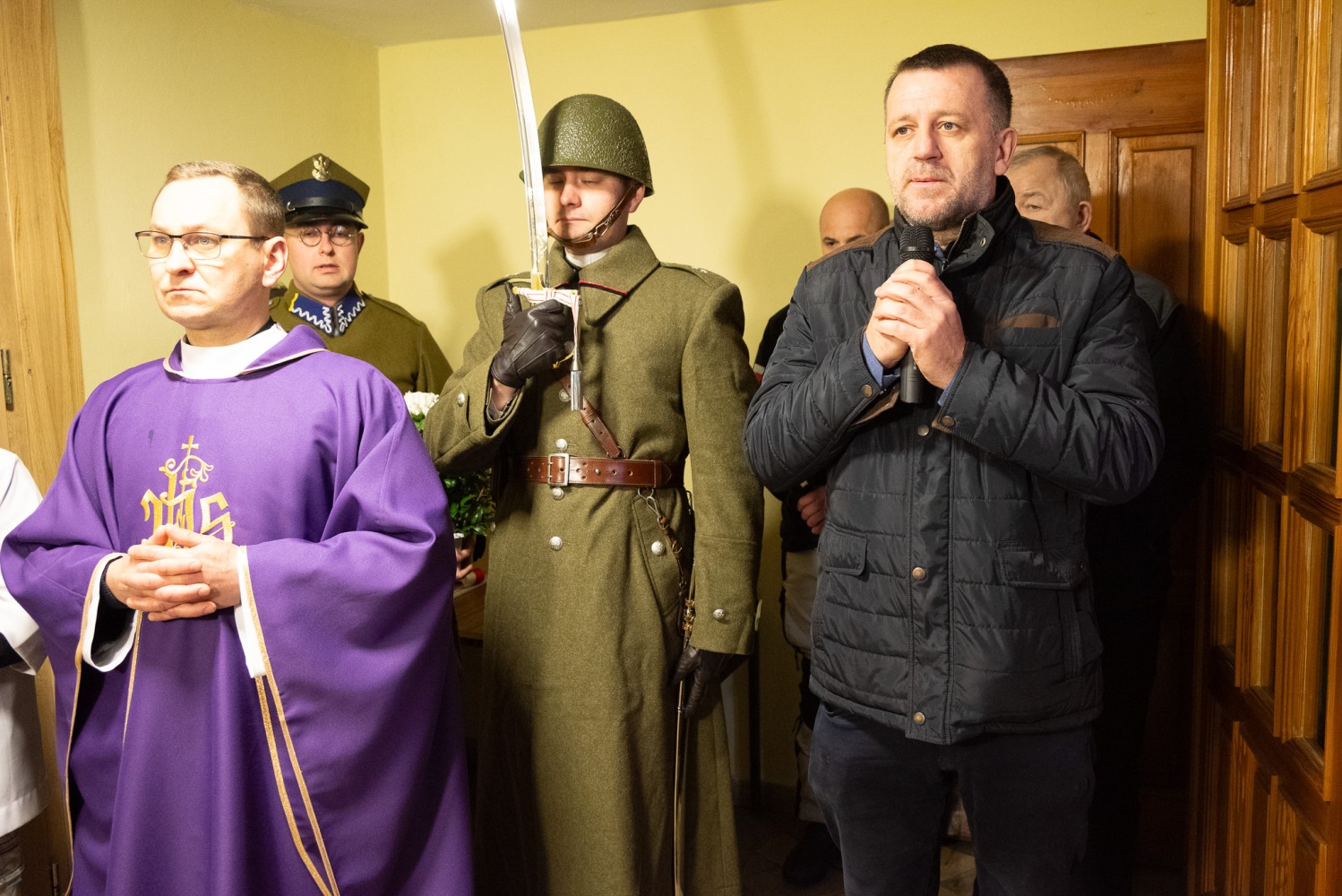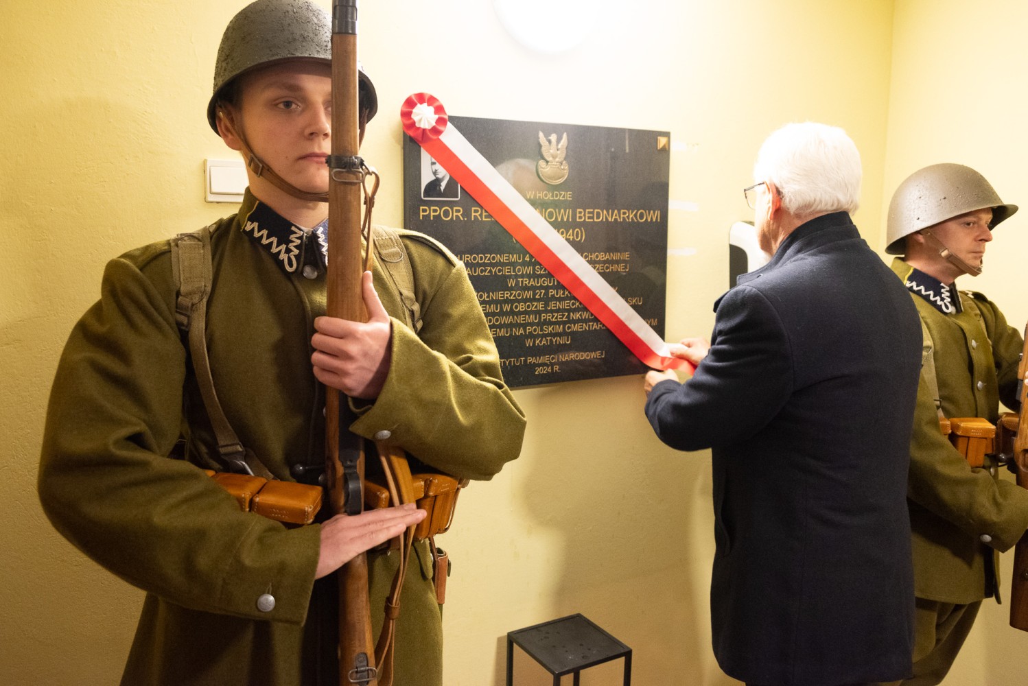 W niedzielny poranek (06.04) w Kaplicy p.w. Św. Urszuli Ledóchowskiej w Pieczyskach odbyła się msza połączona z uroczystością odsłonięcia i poświęcenia tablicy upamiętniającej urodzonego w Chobaninie i zamordowanego w Katyniu ppor. rez. Leona Bednarka. Na wydarzenie zaprosiła Parafia Św. Stanisława w Wieruszowie przy współpracy z Instytutem Pamięci Narodowej oraz inicjatorem upamiętnienia bohatera, sołtysem Dawidem Boryczko.  Mszy przewodniczył proboszcz ks. Łukasz Przybyła. W wydarzeniu wzięli udział członkowie rodziny bohatera, burmistrz Wieruszowa, przedstawiciele IPN, poczty sztandarowe. Wartę przy pamiątkowej tablicy pełnili rekonstruktorzy ze stowarzyszenia historycznego „Gloria Victis”. Leon Bednarek urodził się 4 listopada 1912 roku w Chobaninie, w rodzinie Józefa i Rozalii Bednarków. To właśnie tu kształtował się jego charakter w duchu wiary, tradycji i umiłowania polskiej ziemi. Swoją edukację rozpoczął w Pieczyskach i Wieruszowie, kontynuując ją w Państwowym Seminarium Nauczycielskim w Ostrzeszowie. W 1935 roku przeszedł szkolenie na III Dywizyjnym Kursie Podchorążych Rezerwy Piechoty. Podporucznik rezerwy piechoty mianowany ze starszeństwem 1. stycznia 1938 roku został przydzielony do 27. pułku piechoty. Został nauczycielem, bo wierzył, że naród buduje się w szkole. Wybrał drogę nauczyciela, niosąc w dalekiej Trauguttówce na Wołyniu wartości wiedzy, patriotyzmu i miłości do Ojczyzny. Jednak przyszły czasy, w których wiedza nie wystarczała. Przyszły czasy, w których Ojczyznę trzeba było bronić nie słowem, lecz bronią. We wrześniu 1939 roku, jako podporucznik rezerwy 27 pułku piechoty z Częstochowy, mężnie stanął do walki z niemieckim agresorem. Wkrótce potem został schwytany przez wojska sowieckie i osadzony w obozie w Kozielsku – miejscu cierpienia i śmierci polskiej elity, której jedyną „winą” była miłość do Ojczyzny i przywiązanie do wolności. Wiosną 1940 roku Leon Bednarek został brutalnie zamordowany przez NKWD. Jednym strzałem w tył głowy – odebrano mu życie, a rodzinie – możliwość pożegnania. Jego ciało, jak i tysiące innych, wrzucono do zbiorowej mogiły. Był to haniebny mord dokonany na najlepszych synach Polski – oficerach, intelektualistach, nauczycielach, lekarzach, duchownych – na tych, którzy byli sercem i nadzieją narodu. Była to świadoma próba unicestwienia elit narodowych, by nigdy nie odzyskano dawnej siły i wielkości. Rodzice Leona – Józef i Rozalia – nigdy nie poznali bolesnej prawdy o śmierci swojego syna, podobnie jak jego rodzeństwo: Antoni, Czesław, Maria i Stefan. Nie wiedzieli, co się z nim stało. Czekali. Wypatrywali. Modlili się o cud, którego nie było. Pewnego dnia, wciąż w czasie wojny, ktoś zapukał do drzwi domu Bednarków. Nie powiedział nic. I nie trzeba było. Przyniósł zakrwawiony wojskowy płaszcz. Płaszcz Leona. To była jedyna rzecz, która z niego wróciła. Jedyny dowód, że istniał. Że walczył. Że zginął. – Nie było aktu zgonu. Nie było grobu. Nie było słów, które mogłyby ukoić ból. Przez całe życie jego rodzice i rodzeństwo trwali między nadzieją a rozpaczą – niepewni, ale przeczuwający najgorsze. Nie mogli zapalić świecy nad jego grobem, nie mogli wypowiedzieć ostatniego „żegnaj”. Zostali z ciszą. Zostali z krwią zaschniętą na mundurze, która przez dziesiątki lat krzyczała za nich – że prawda została zakopana razem z ciałem – mówiła Marta Kowalińska z rodziny zamordowanego. – Teraz, kiedy wszyscy z nich są już po drugiej stronie życia, pamięć o nim pielęgnują kolejne pokolenia rodziny, niosąc w sercach dumę i nieustający szacunek do jego osoby. W 2007 roku Leon Bednarek został pośmiertnie awansowany na stopień porucznika. „Ojczyzna to wielki zbiorowy obowiązek” – mówił Cyprian Kamil Norwid. „Naród, który nie zna swojej przeszłości, umiera i nie buduje przyszłości” – przypominał święty Jan Paweł II. Leon Bednarek, spełniając swój obowiązek wobec Ojczyzny, oddał najwyższą ofiarę – swoje życie – kontynuowała Marta Kowalińska. – Dziś składamy hołd wszystkim ofiarom Katynia, których milczące bohaterstwo pozostaje nieśmiertelną lekcją patriotyzmu dla kolejnych pokoleń Polaków. Pamiętajmy również o latach spędzonych przez Leona w Chobaninie – miejscu, które na zawsze pozostało w jego sercu symbolem domu, rodziny i polskości. Leon Bednarek żył krótko, ale dzięki heroicznej postawie stał się na zawsze przykładem męstwa, patriotyzmu i niezachwianej wiary. Niech odpoczywa w pokoju. Niech jego pamięć trwa na wieki. Cześć Jego pamięci! ŻRÓDŁO: tugazeta.pl