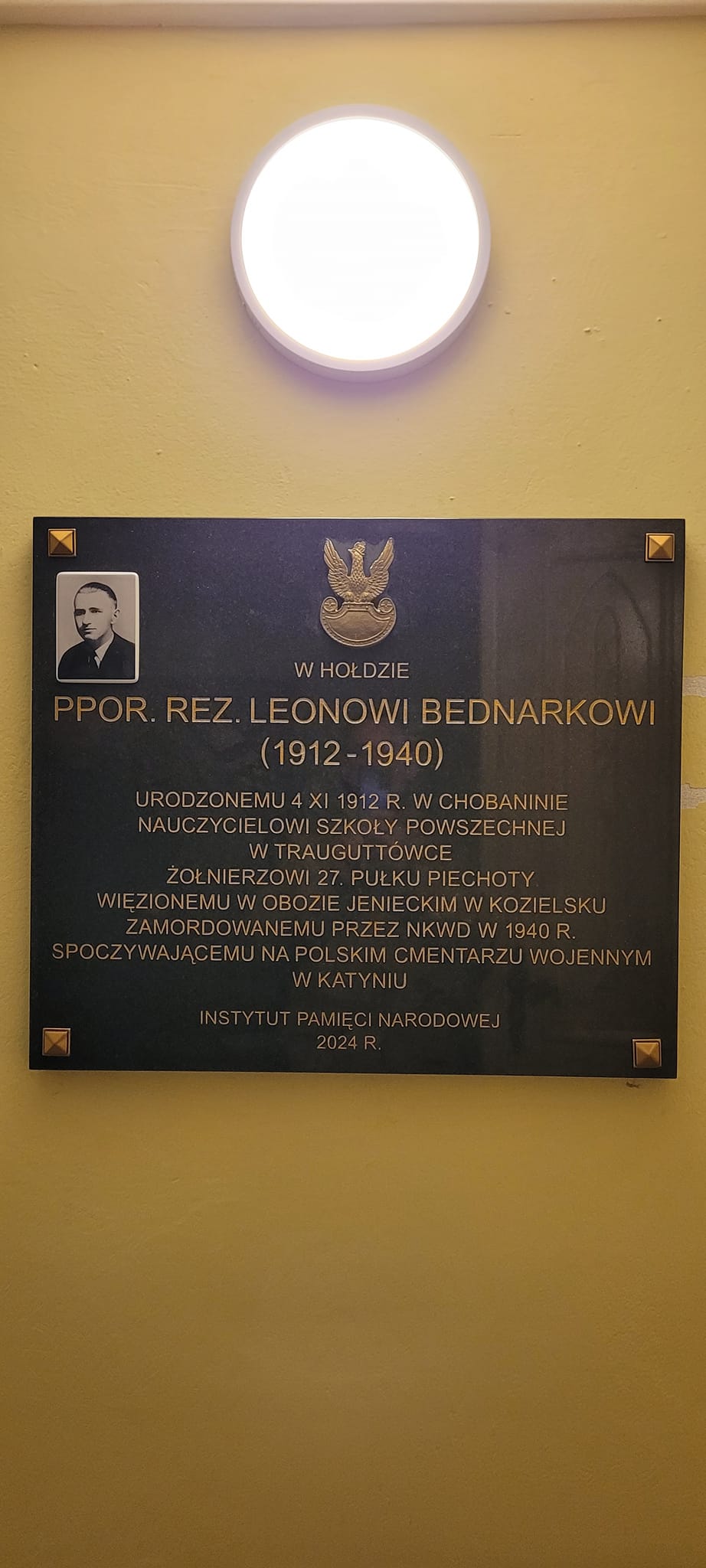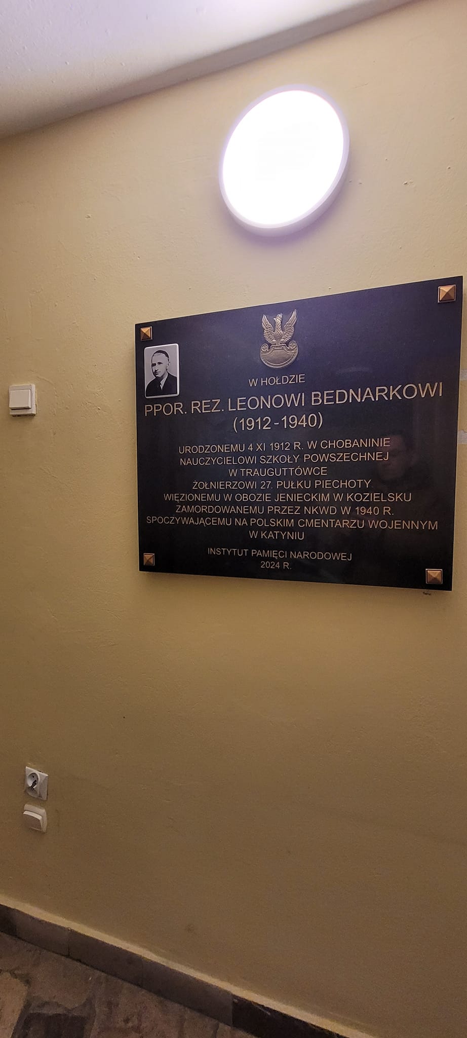 Oddział Instytutu Pamięci Narodowej – Komisja Ścigania Zbrodni przeciwko Narodowi Polskiemu w Łodzi przy współpracy z naszą Parafią, z inicjatywy Dawida Boryczki, upamiętnił naszego Parafianina, pochodzącego z Chobanina, zamordowanego w Katyniu przez NKWD w 1940 roku – podporucznika rezerwy Leona Bednarka.